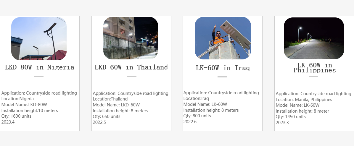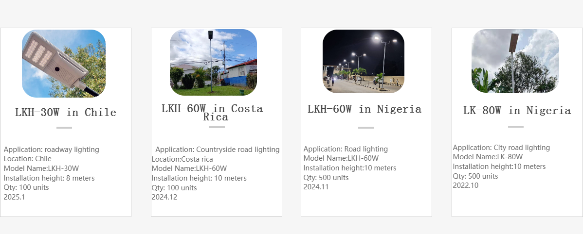 Nuestros productos principales incluyen farolas solares LED integradas, farolas solares tipo split, luminarias de gran altura, reflectores LED, y luces LED para calles y áreas industriales. Estos productos se utilizan ampliamente en proyectos de iluminación pública, carreteras, parques y espacios urbanos en muchos países y regiones del mundo.